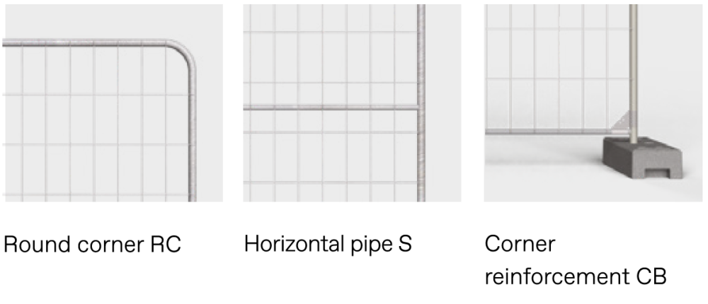 - Kulatý roh (značeno RC) - Tyto panely jsou vyztuženy zaoblenými trubkami, což zajišťuje vyšší odolnost a stabilitu. Jsou ideální pro náročná prostředí, kde je požadována zvýšená bezpečnost.